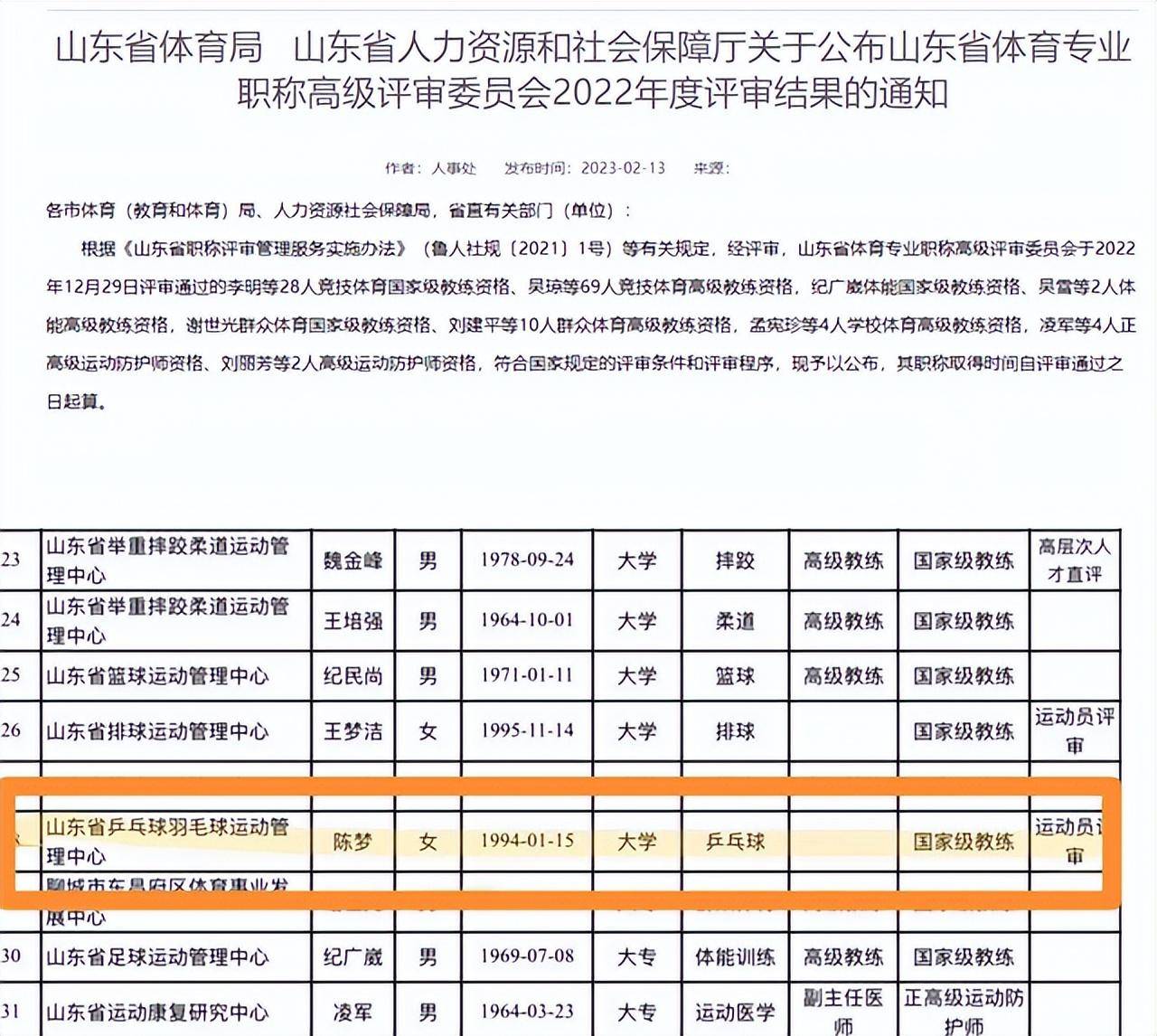 而就在一天后,山东省行状皇冠体育高档评审委员会2022年度评审也公布了后果。国乒一姐陈梦赢得了行状乒乓球行状选手的名称:国度队教化员(竞技皇冠体育教化员),况且照旧高档职位。当我打球时,我无法装扮我想要赢得奥运冠军的设想。我赢得了正高的名称。其实我一经提前安排好了退休后的责任!