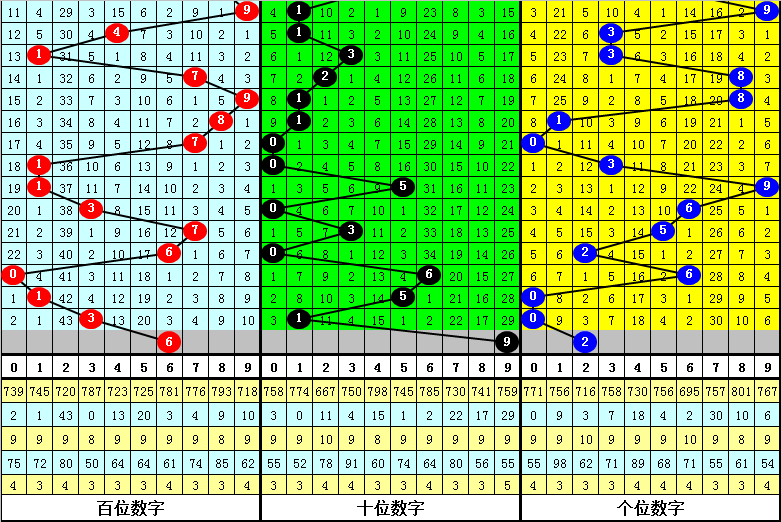 4、号码0-9出现开出频次差异为:号码1出现22次,号码9出现21次,号码4出现20次,号码7、8出现16次,号码0出现11次,号码3、5出现10次,号码2出现8次,号码6出现7次。一般来说,明白最冷的三码:2、5、6不会同期出现,本期杀一码:5;明白最热的四码:1、4、7、9中一般会出现奖号,本期忽闪号码;9。
